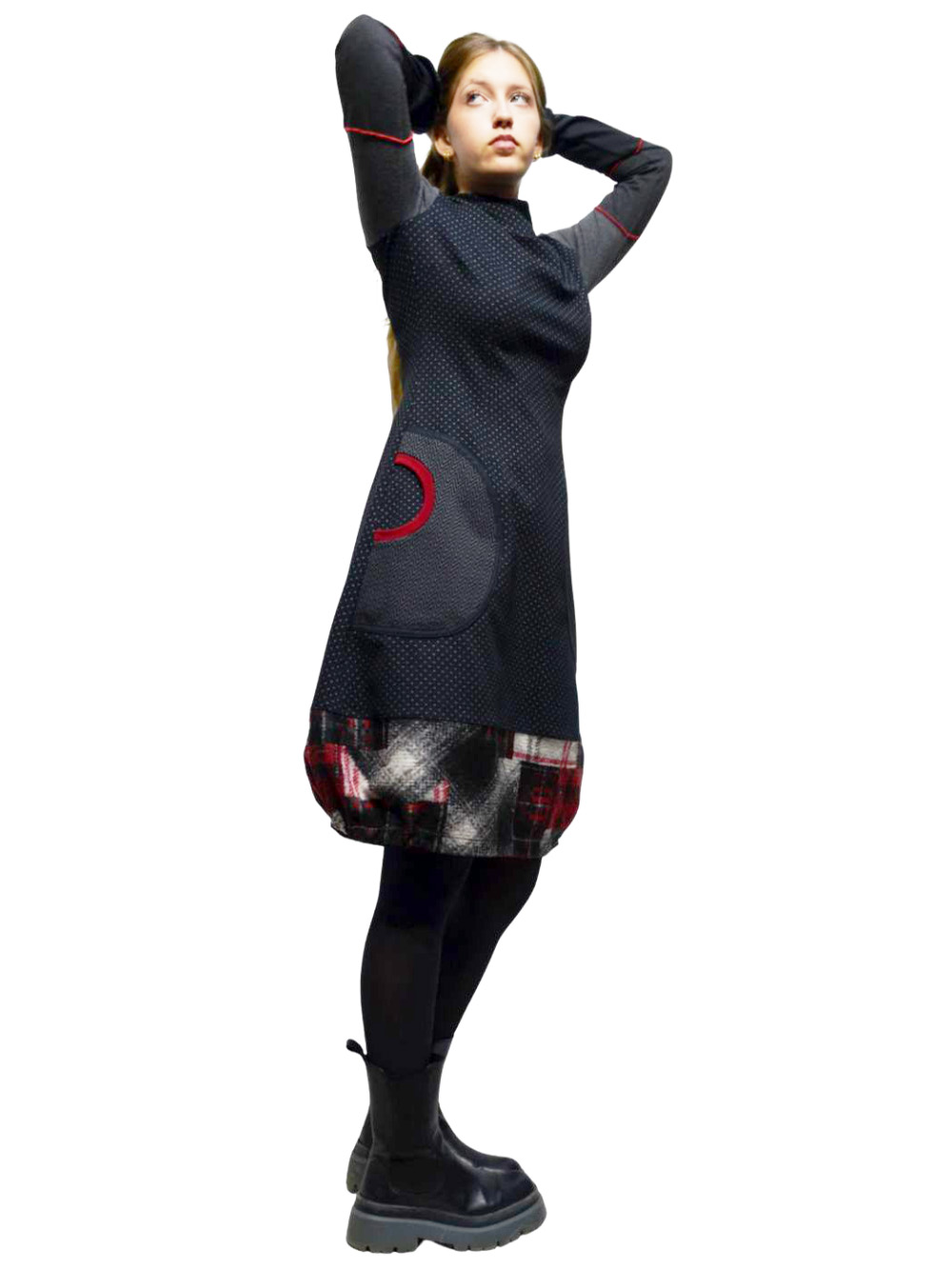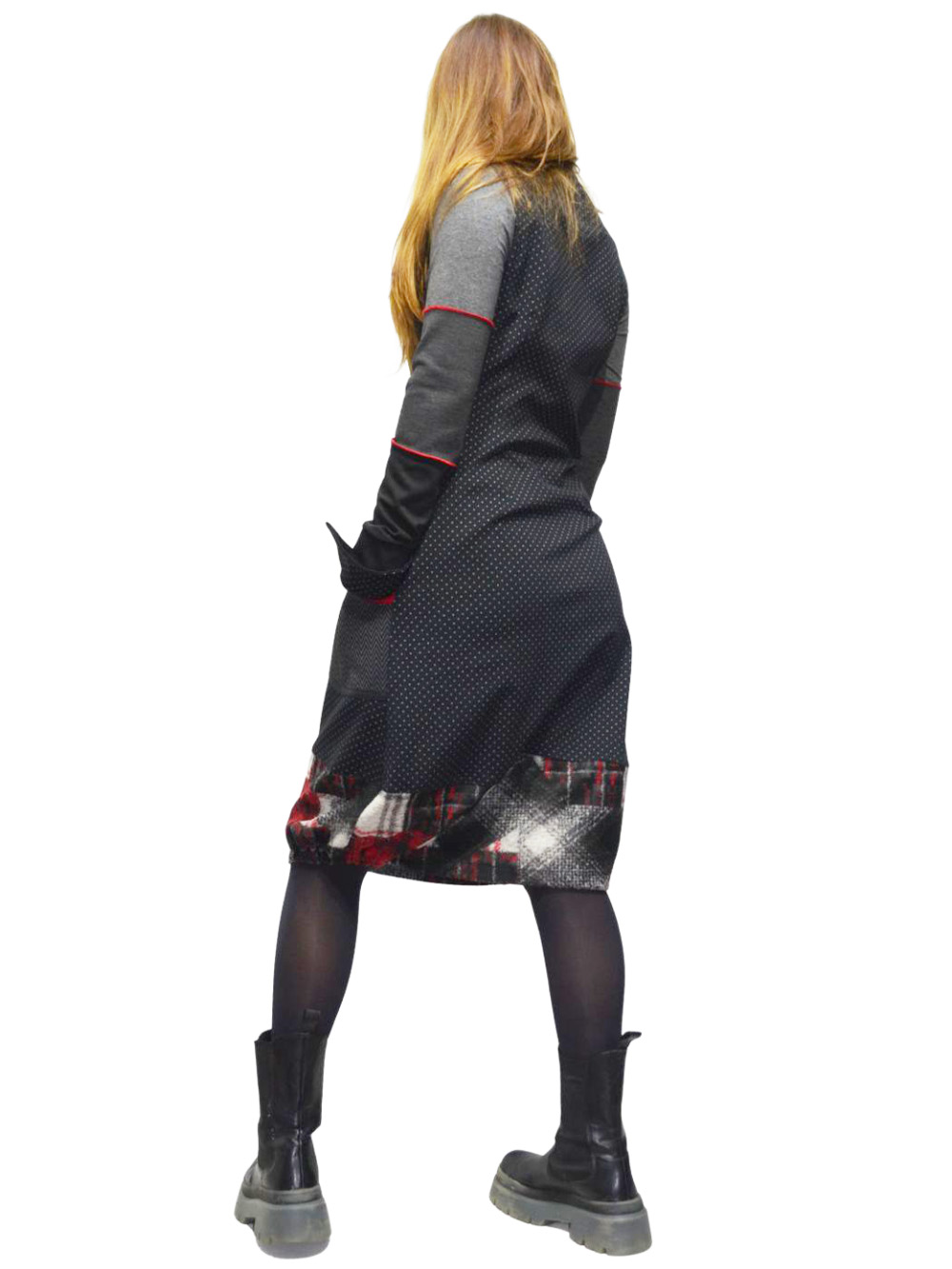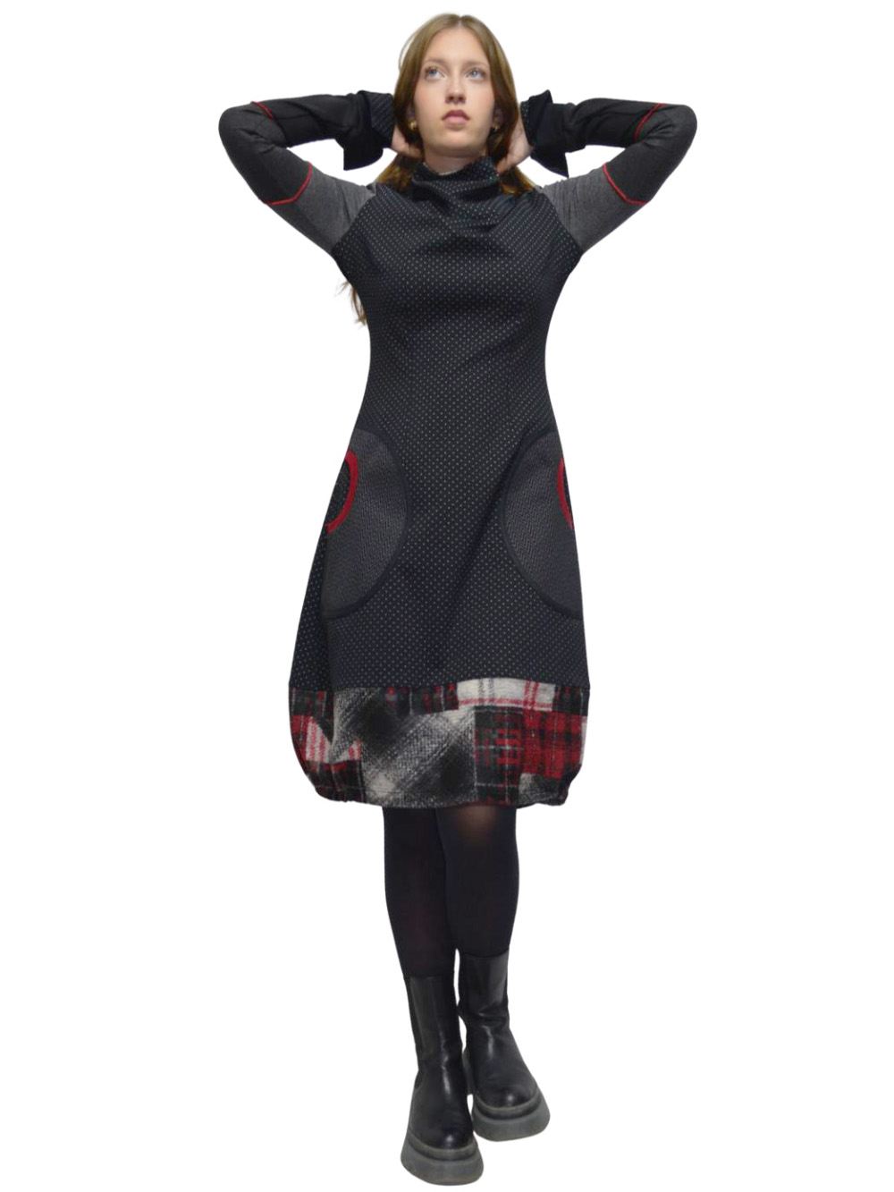 Casual „A“ BLACK- haljina od dezenirane tkanine neprolaznog dizajna i vrhunskog kvaliteta, čvrst, dvostruko tkan materijal, koji je pritom rastegljiv, što ga čini udobnim, a u isto vreme odlično drži formu! Miks sa sivim materijalima, bordo detaljima! Fantastično uklopiva haljina! Must have!