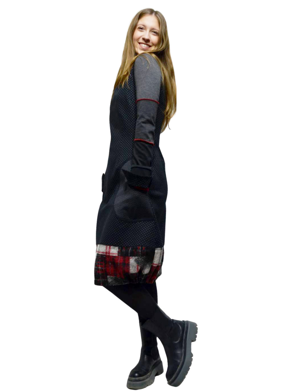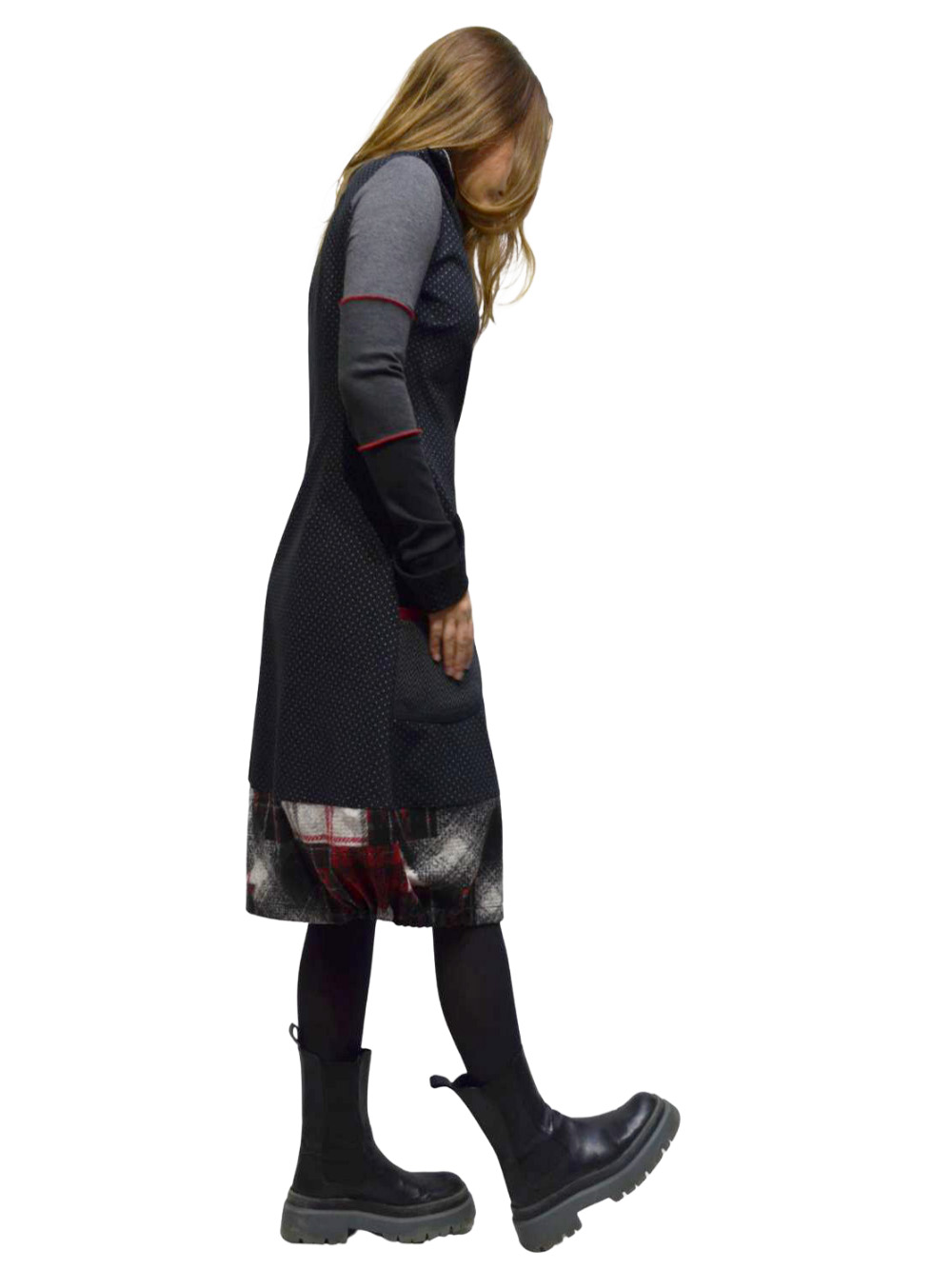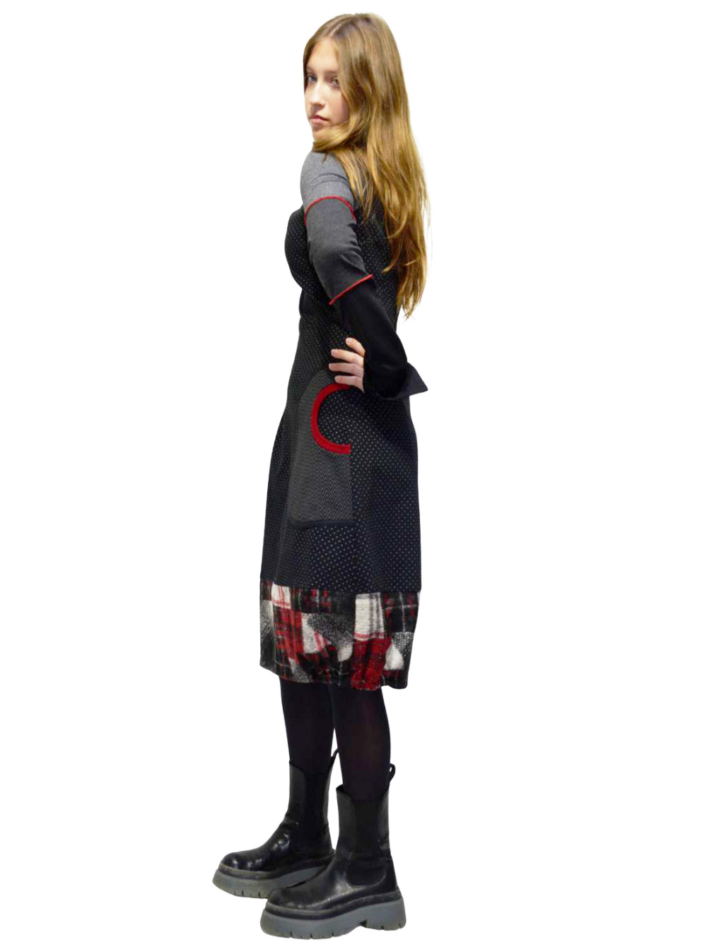 Casual „A“ BLACK- haljina od dezenirane tkanine neprolaznog dizajna i vrhunskog kvaliteta, čvrst, dvostruko tkan materijal, koji je pritom rastegljiv, što ga čini udobnim, a u isto vreme odlično drži formu! Miks sa sivim materijalima, bordo detaljima! Fantastično uklopiva haljina! Must have!