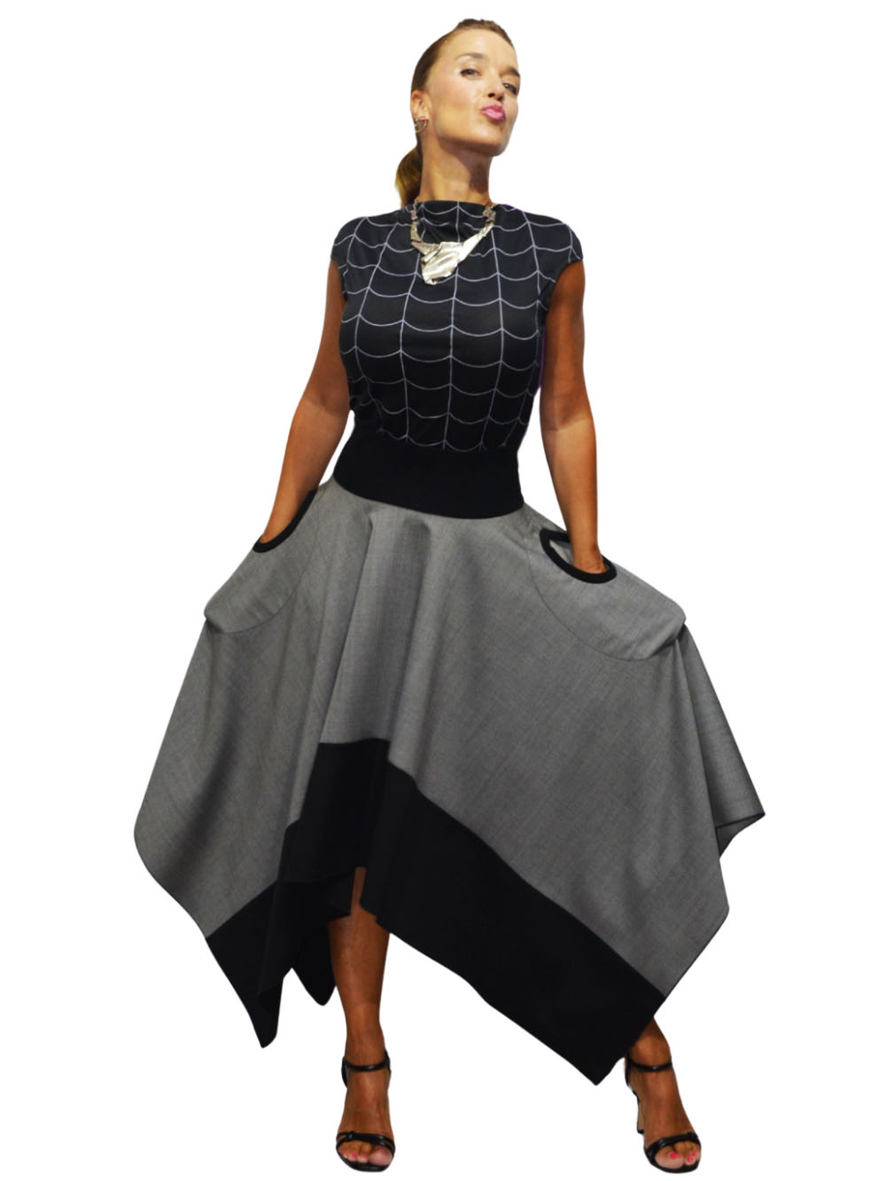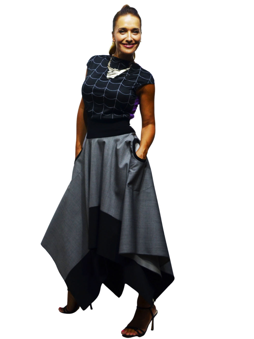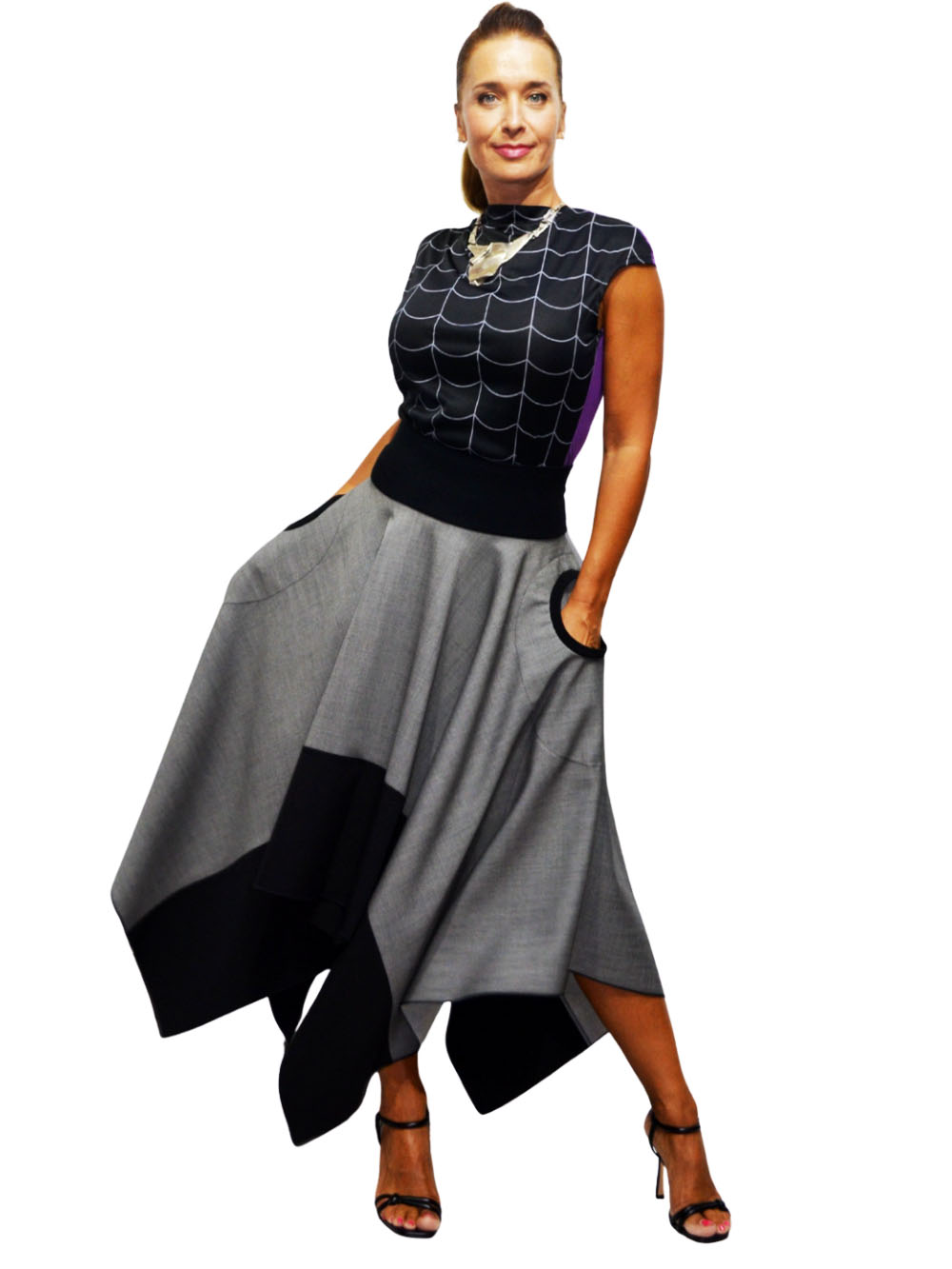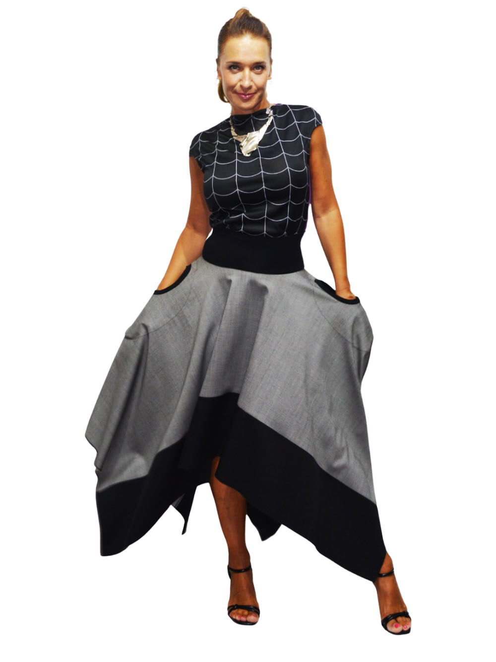 Šifra proizvoda: SUK-2679/25 Kategorije: Odeća, Suknje Oznake: atraktivno, boje, geometrija, grey, limited, romantično, romb, šlic, suknja, unikat